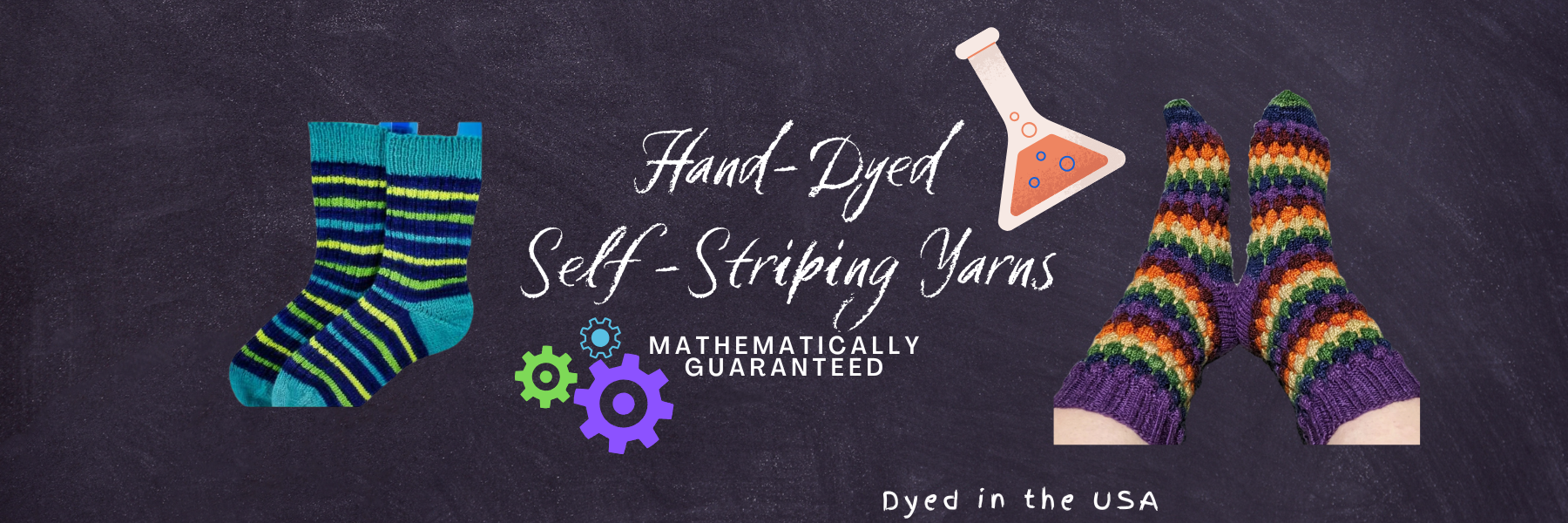 Each skein is hand dyed by me, one at a time, using my years of lab experience to create a consistent, repeatable product that is still made by hand. Each skein has to go through my hands at least twice from beginning to end in order to make the stripe magic happen.