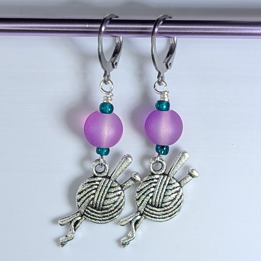 Yarn Ball and Needles Markers & Earrings