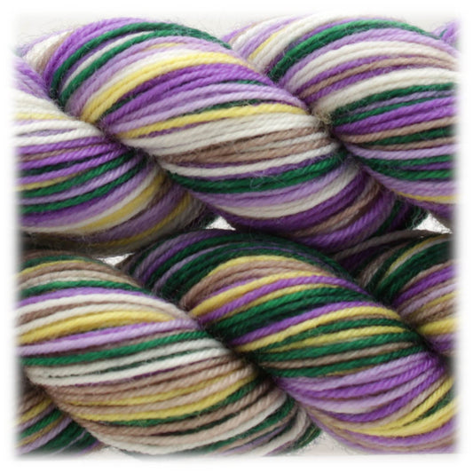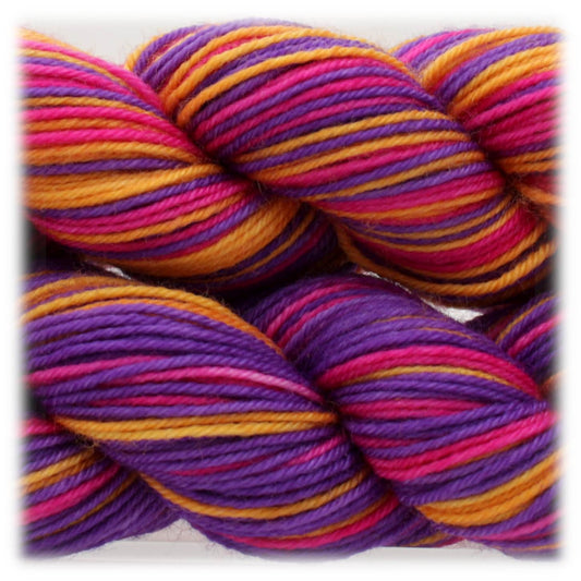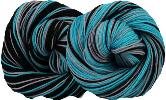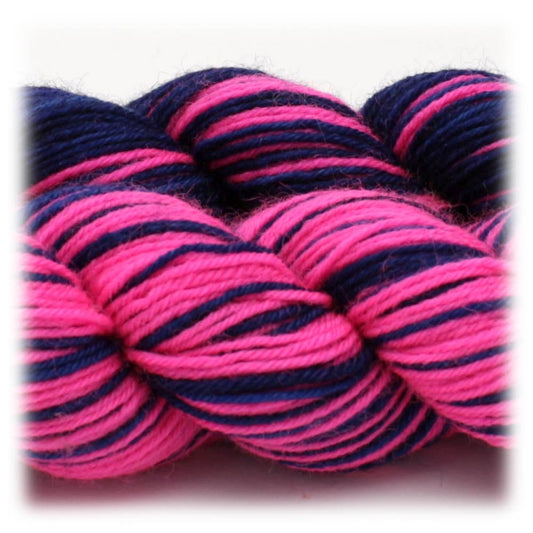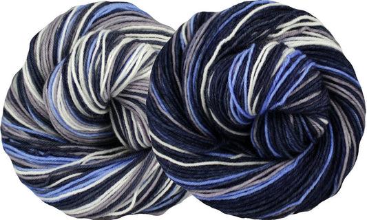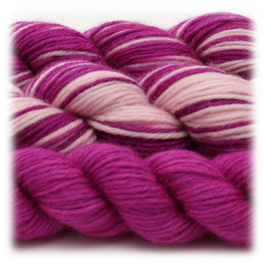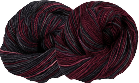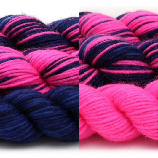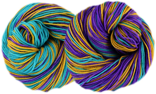 When you order an Isomer colorway, you will get 2 50g skeins of self striping yarn that coordinate, but DO NOT MATCH. All the colors in each skein will be repeated, but will stripe in a different order or width on each half.
