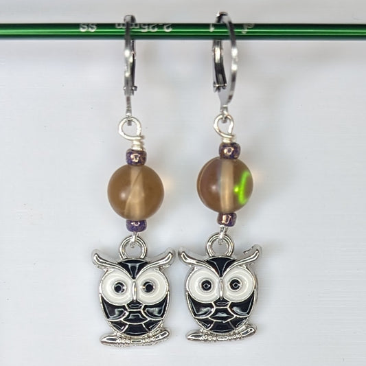 Enamel Owl Stitch Markers & Earrings
