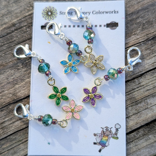 Tiny Enamel Flowers Stitch Markers & Earrings