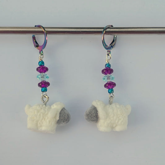 Sally the Science Sheep Acrylic Stitch Markers & Earrings