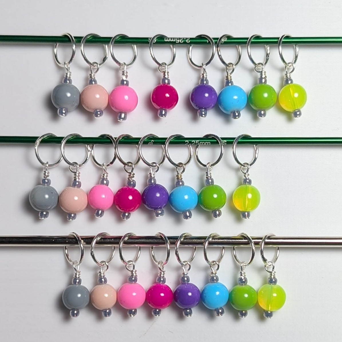 This listing is for one set of stitch markers. Each set comes with 24 markers, as well as a convenient plastic storage box!