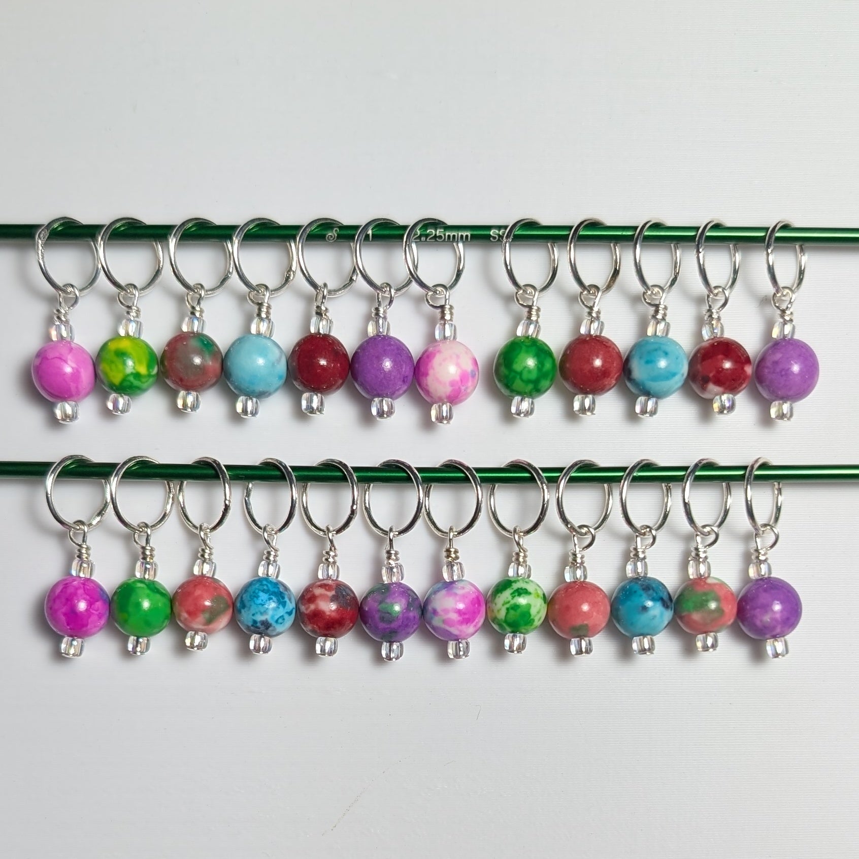 Each marker is handmade by me one at a time using snag free soldered sterling silver plated jump rings and sterling silver plated head and/or eye pins.