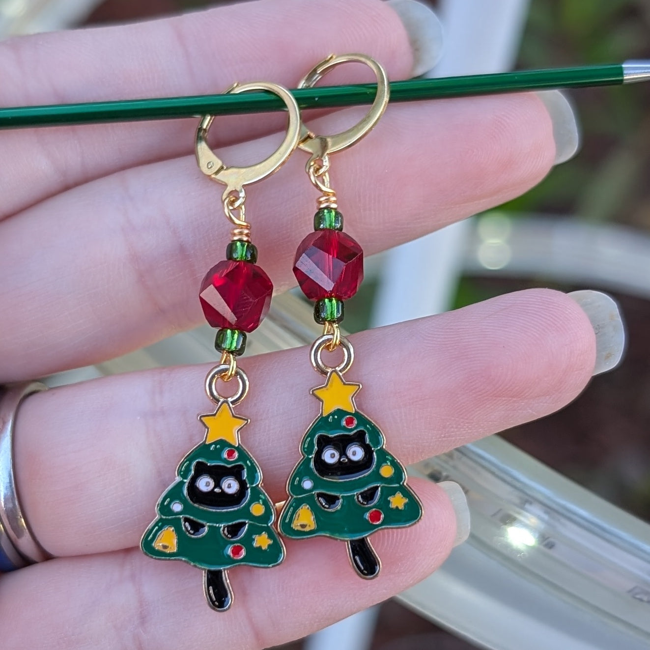 Black Cat Christmas Earrings and Markers